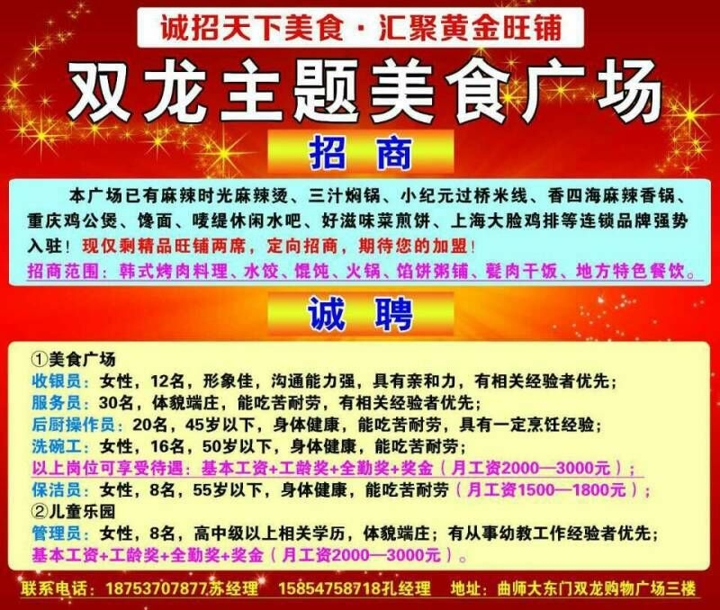 雙龍主題美食廣場誠招天下美食,匯聚黃金旺鋪