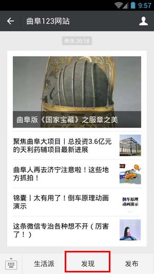 1、關(guān)注曲阜123官方微信公眾號(hào)