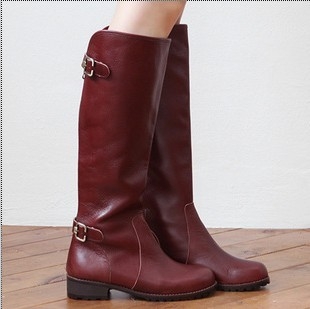 - 韓國(guó)女鞋正品代購(gòu)2014秋冬季款歐美街頭帥氣真皮酒紅色高筒靴子女40碼 出售